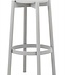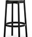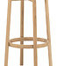 Constructed from solid Japanese oak, the stool has a strong architectural presence, yet remains visually light thanks to its clean vertical lines and uncluttered silhouette. The seat is slightly rounded for comfort, and the integrated circular footrest gives users a natural resting point while reinforcing the stool’s overall strength.