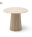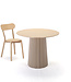 Round 95 cm dining table in Japanese chestnut, featuring a sculptural barrel base and available in P..