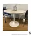 FLUTE ROUND DINING TABLE 39.5'' DIA. - PRE-POLISHED CALACATTO CERAMIC TOP WHIITE BASE.