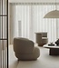 Its distinctive base, carved from solid oak, creates a floating effect while referencing the organic forms of river stones. With the upholstery from Kvadrat premium fabric, This low-profile yet substantial chair is crafted to provide deep comfort without compromising on visual lightness.