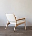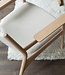 Karimoku Case N–LC01 Lounge Chair. Japandi hybrid with carved oak frame and upholstered seat — elegance and comfort, available in Vancouver.
