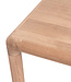 Solid wood tabletop and legs joined seamlessly for visual continuity.