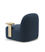 Minimalist lounge chair with left-side table in sustainable Japanese oak. Upholstered in luxurious Kvadrat fabric for a refined Japandi aesthetic.